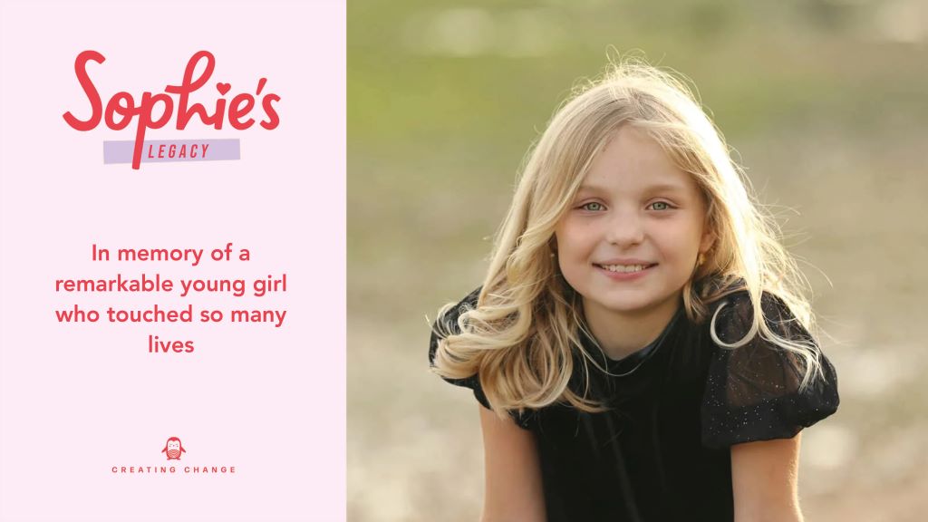 Sophie died from cancer in September 2021, aged just 10. She compiled a list of hospital changes she wanted to see during her illness. As a result, the charity’s central missions are the availability of play specialists seven days a week; improvements to children’s food; meals for parents when staying with their child; specific training in childhood cancer for GPs, nurses and other health professionals; and increased funding for childhood cancer research.